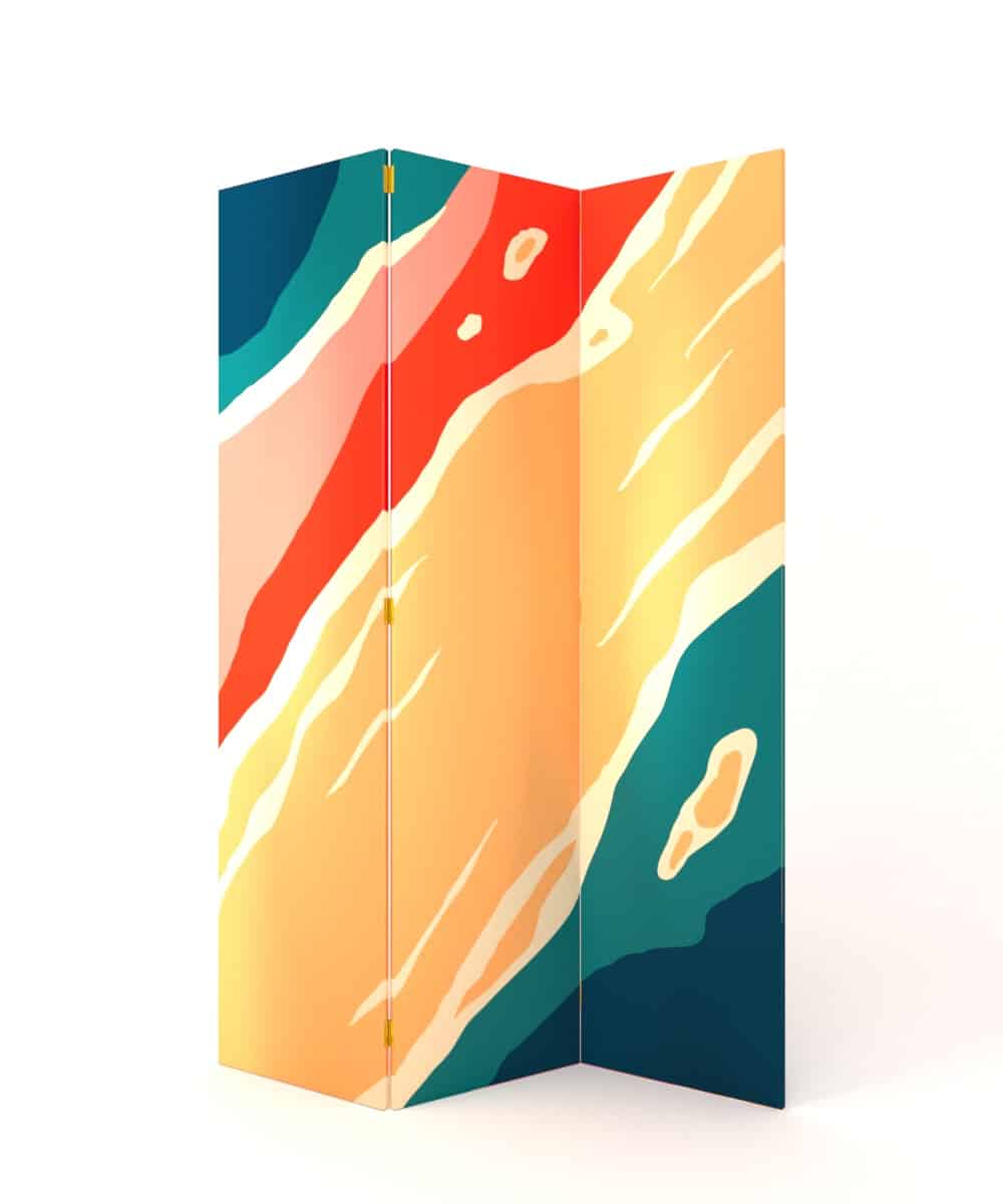 ideal para el hogar moderno. Fabricado en madera e impresa en tela a una cara, no solo lo ayudará administrar el espacio, sino que también será una decoración interior muy elegante. El Biombo plegable es mucho más que un divisor simple, puede aportar un encanto excepcional a cada interior. Sensación de privacidad y comodidad incluso en habitaciones más grandes.
