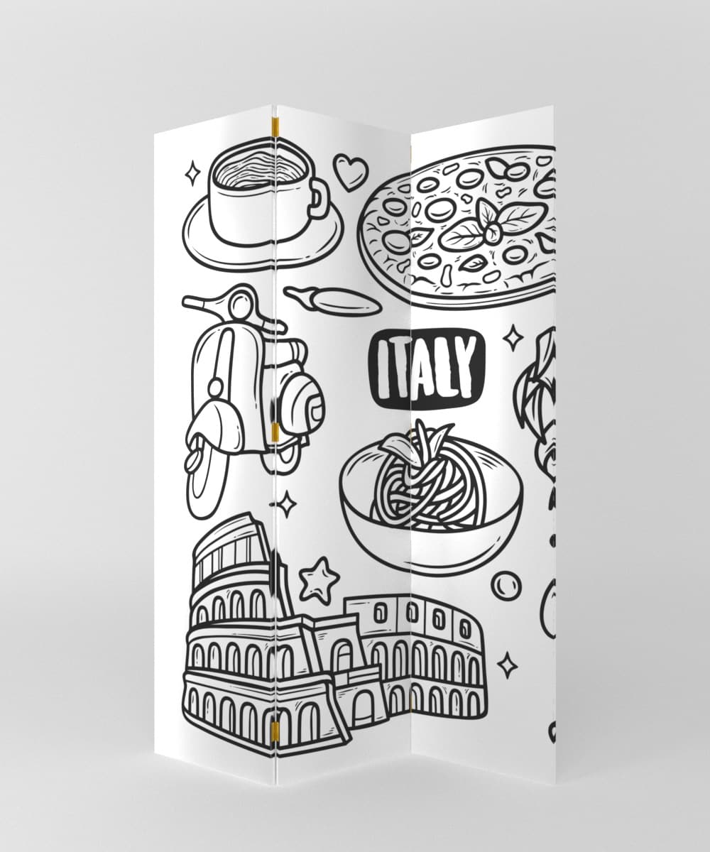 ideal para el hogar moderno. Fabricado en madera e impresa en tela a una cara, no solo lo ayudará administrar el espacio, sino que también será una decoración interior muy elegante. El Biombo plegable es mucho más que un divisor simple, puede aportar un encanto excepcional a cada interior. Sensación de privacidad y comodidad incluso en habitaciones más grandes.